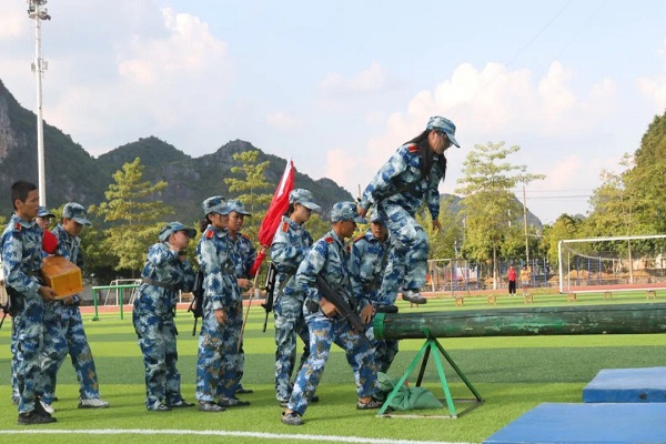 本次竞赛分为团队赛和个人赛两个部分,由2021级各二级学院派一支10人的队伍参与团队赛以及一男一女参与个人赛。竞赛伊始,由教官团队为新生进行全程赛程示范,他们干练的动作加上良好的配合,迅速且规范地完成了演示。紧接着进行的是团队赛,分为负重急行军、穿越障碍、模拟战场作战三个部分,在比赛过程中,各支队伍相互配合、相互协助通过各个关卡,以良好的团队精神完成竞赛。在个人赛中,穿越网区、过独木桥等所有环节都需要独自进行,但新生们勇于挑战自我、超越自我,在竞赛中将坚持不懈的精神进行到底。
