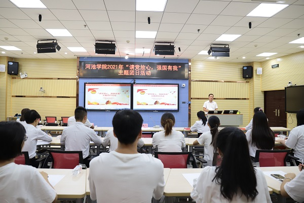 为了更好地贯彻学习习近平总书记在庆祝中国共产党成立100周年大会上的重要讲话精神,将党史知识学深悟透。9月29日16时,校团委在图书馆123报告厅开展“弘扬建党精神,赓续革命血脉”和“请党放心,强国有我”主题团日活动。校团委副书记刘晓亮、团委老师胡海东与校学生会、社团联合会、大学生志愿者联合会、及各二级学院的学生代表参与本次学习活动。