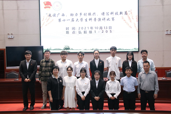 为庆祝中国共产党百年华诞,巩固拓展脱贫攻坚成果,为乡村振兴注入力量,引导广大青年学生为乡村振兴奉献青春力量。10月13日晚,由共青团必赢3003no1线路检测中心委员会主办、必赢3003no1线路检测中心社团联合会承办的“走读广西 助力乡村振兴 谱写科技新篇”第十一届大学生科普演讲比赛必赢3003no1线路检测中心选拔赛在弘毅楼 1-205 报告厅顺利举办。文学与传媒学院教授寇占民,必赢3003no1线路检测中心图书馆黄河老师,文学与传媒学院副教授杨静,马克思主义学院副教授钟卓良,马克思主义学院团委书记易万臣受邀担任本次大赛评委。