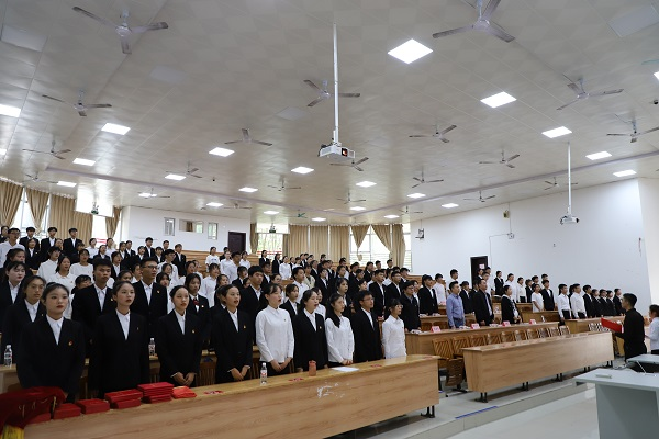 仪式开始,全体起立,合唱团歌。