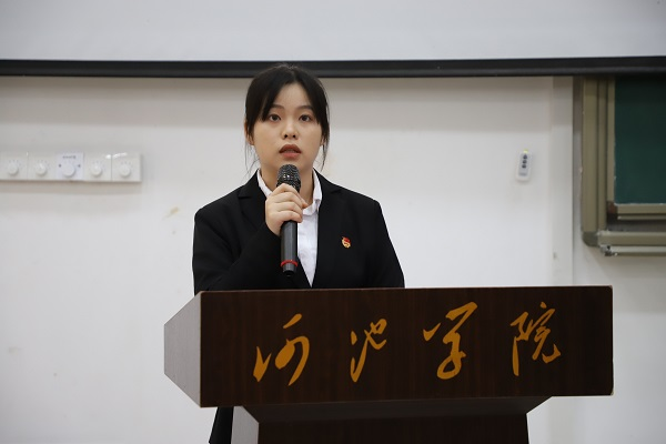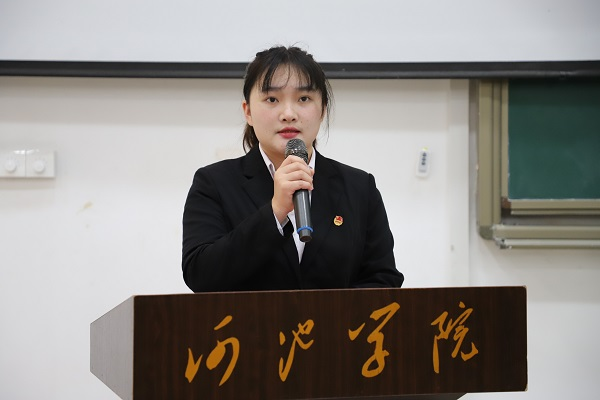 而后,第十八届主席团成员陆丽娇代表发言,她对上一年工作进行了总结,她表示在过去一年的工作中学生会不仅充分加强了学校与广大同学之间的联系,更是取得良好成果。同时,她希望成为新一届学生干部的同学能够不忘初心,砥砺前行,再接再厉,用实际行动反馈师生的信任,明确自身职责,增长自身才干。