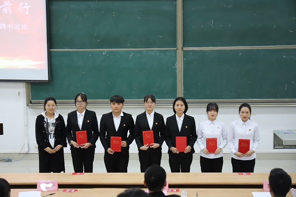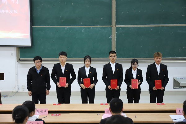 随后,王勇亮老师、孙艳平老师以及胡海东老师为第十八届各部门部长和副部长颁发聘书,并合影留念。