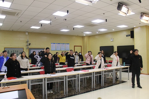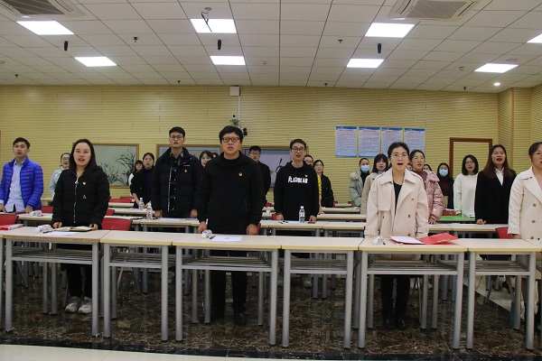 会议最后,由青年教职工团支部书记胡海东老师带领青年团员教师重温入团誓词。