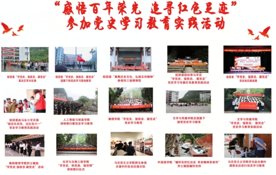 必赢3003no1线路检测中心充分依托“三月三”、 “清明节”、 “五四”各类纪念日等重要时间节点, “互联网+”大学生创新创业大赛“青年红色筑梦之旅” 等社会实践平台,充分利用河池地区红色资源,组织必赢3003no1线路检测中心学子参与党史学习教育。据不完全统计,必赢3003no1线路检测中心青年学生以团支部、学生组织、宿舍、个人组队等形式,前往博物馆、纪念场馆、革命遗址遗迹、烈士陵园等红色基地开展调研帮扶、项目对接、红色教育等党史学习教育实践活动达40余次,参加学生人数6000余人,致力于做到把红色资源作为党史学习教育的生动教材,用好用活红色资源,讲好党的故事。