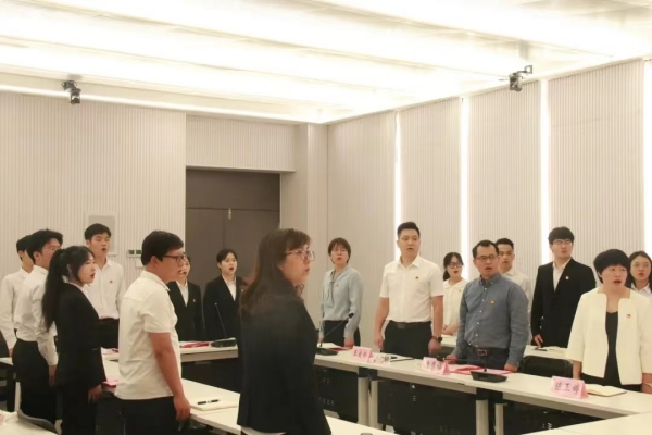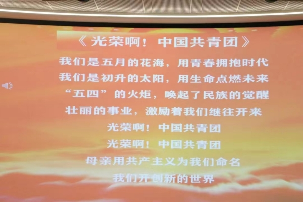 会议开始,全体成员合唱《光荣啊!中国共青团》,并且观看习近平总书记在庆祝中国共产主义青年团成立100周年大会上的重要讲话视频。