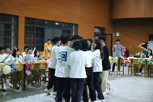 随后是由监察部、财务部和策划部的合唱《平凡之路》、文体部的舞蹈《歌舞串烧》游戏互动环节“夹气球跑”,参加比赛的小伙伴相互配合,进展迅速,游戏还伴随着惩罚环节。随后是组织部和人资部的手势舞《听我说谢谢你》,最后是社团联络部的合唱《花海》。