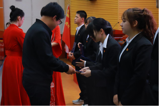 随后,第十九届团学成员代表为第二十届团学成员代表授旗。