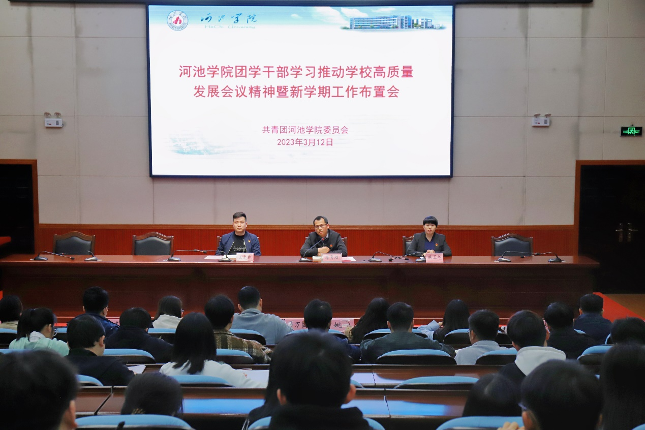 3月12日,必赢3003no1线路检测中心团学干部学习推动学校高质量发展会议精神暨新学期工作布置会在弘毅楼1-205报告厅顺利召开。参加本次会议有校团委全体领导老师,各二级学院团委书记,校院两级主要团学干部。会议由校团委副书记王爱林主持,会议在团歌声中拉开序幕。