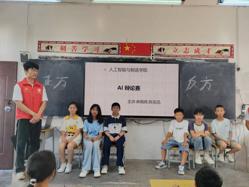 图5 实践团成员带领小朋们开展AI辩论赛