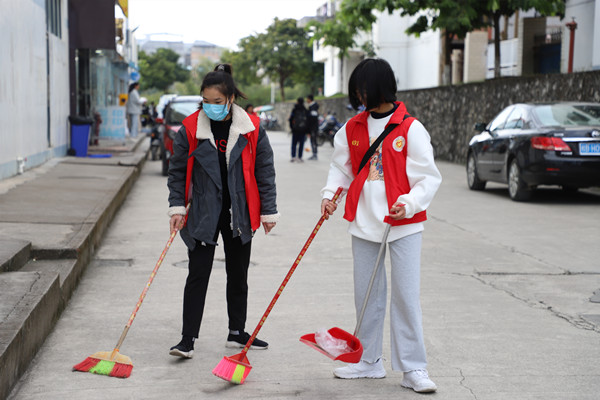 身着红色马甲的志愿者积极认真的打扫,他们或是拿着扫帚清扫沉积的落叶,或是弯腰捡起角落的垃圾,亦或是用塑料袋装起地上的纸屑。他们热情洋溢,辛勤劳动,不怕脏,不怕累,相互配合。清扫结束后,校园主干道被清理得干干净净,“奉献、友爱、互助、进步”的志愿者精神也在劳动中散发出新的光彩。