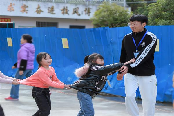 课后,小老师带着孩子们开展游戏活动。游戏活动的开展让孩子们在繁忙的学习中得到放松,同学们欢天喜地、尽情游戏,游戏中他们遵守规则、互帮互助,充分展现了遵规守纪、团结协作的精神。
