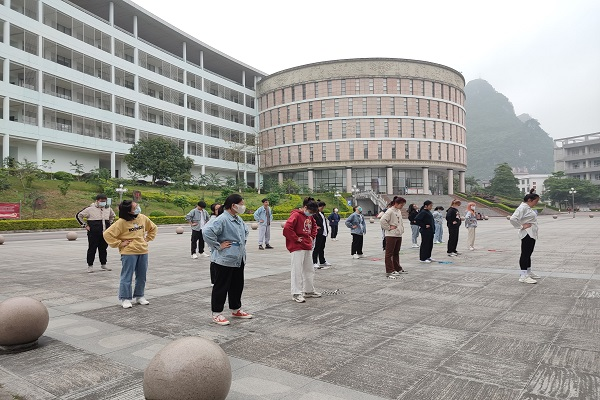 当天下午,花样跳绳协会成员和参加这场教学活动的同学们集中在逸夫楼广场。首先由必赢3003no1线路检测中心花样跳绳协会副会长刘师玉带领参加活动的人员进行热身运动。