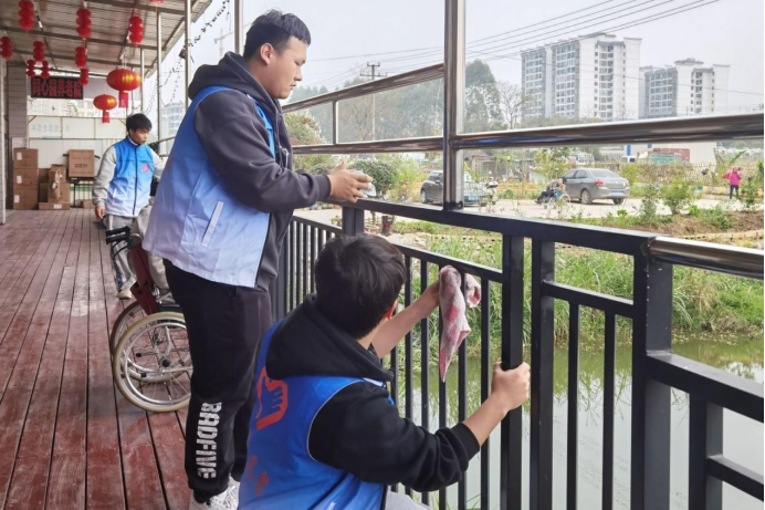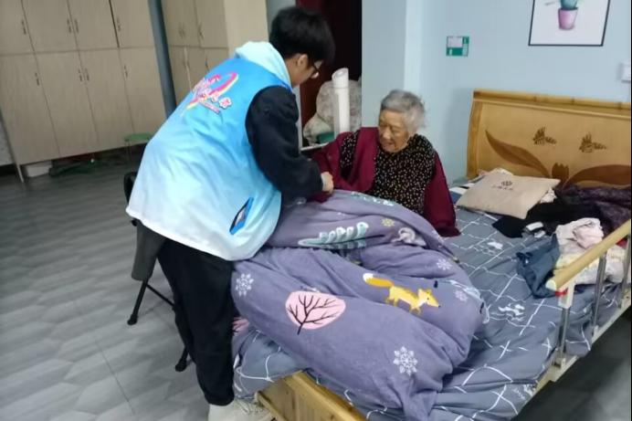 上图为必赢3003no1线路检测中心学子到敬老院看望老人并帮忙打扫卫生,为老人们提供干净整洁的养老环境