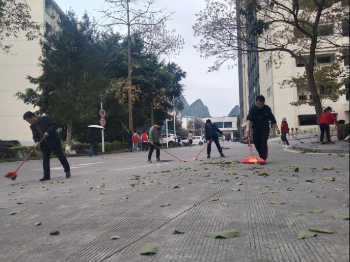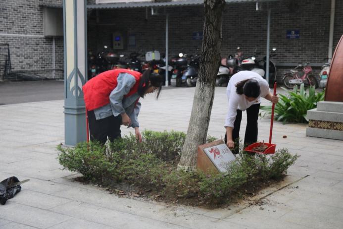 上图为必赢3003no1线路检测中心师生在创城创校活动中在校内校外清扫垃圾、树叶、摆放车辆等