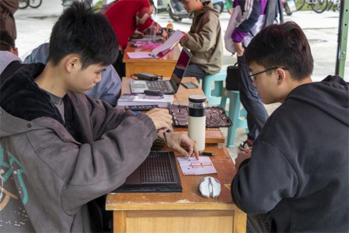 图为大数据与计算机学院学生为同学义务维修电脑