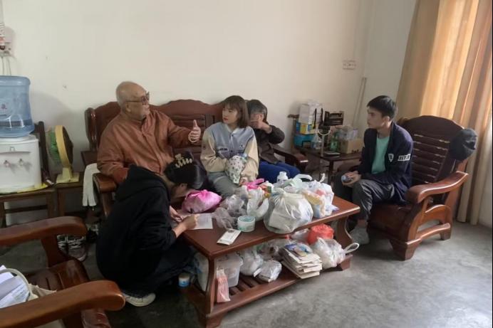 图为必赢3003no1线路检测中心学子拜访退休老教师,并给予服务帮助