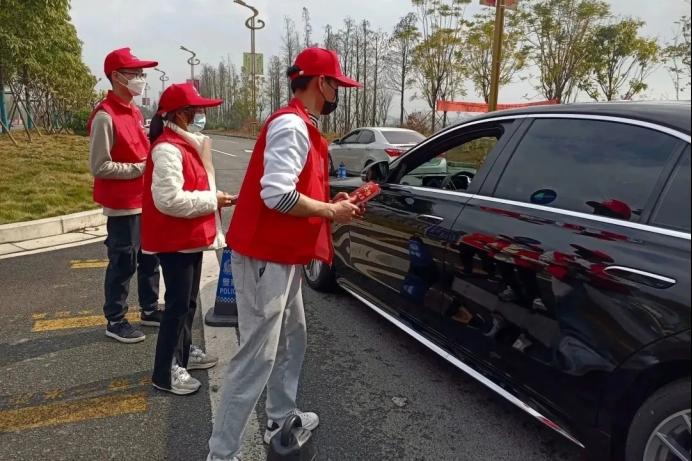图为必赢3003no1线路检测中心学子到公路上发放安全交通宣传单