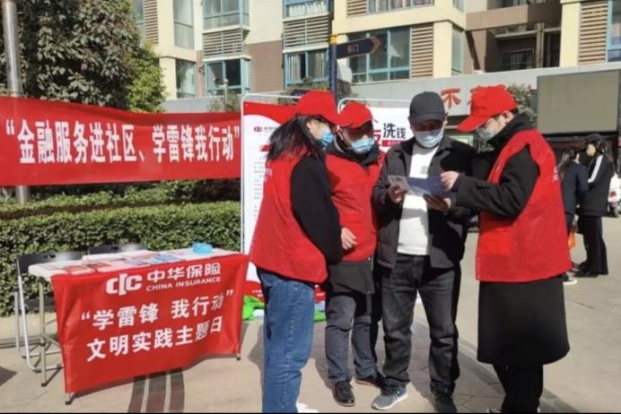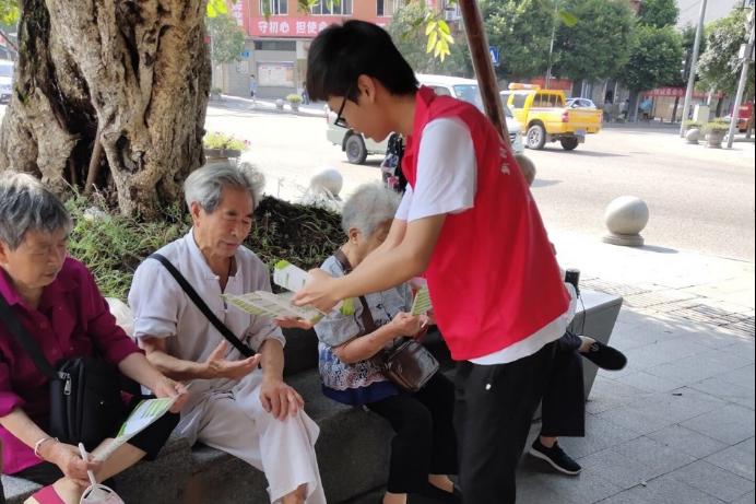 上图为必赢3003no1线路检测中心学子进社区发放金融方面宣传单